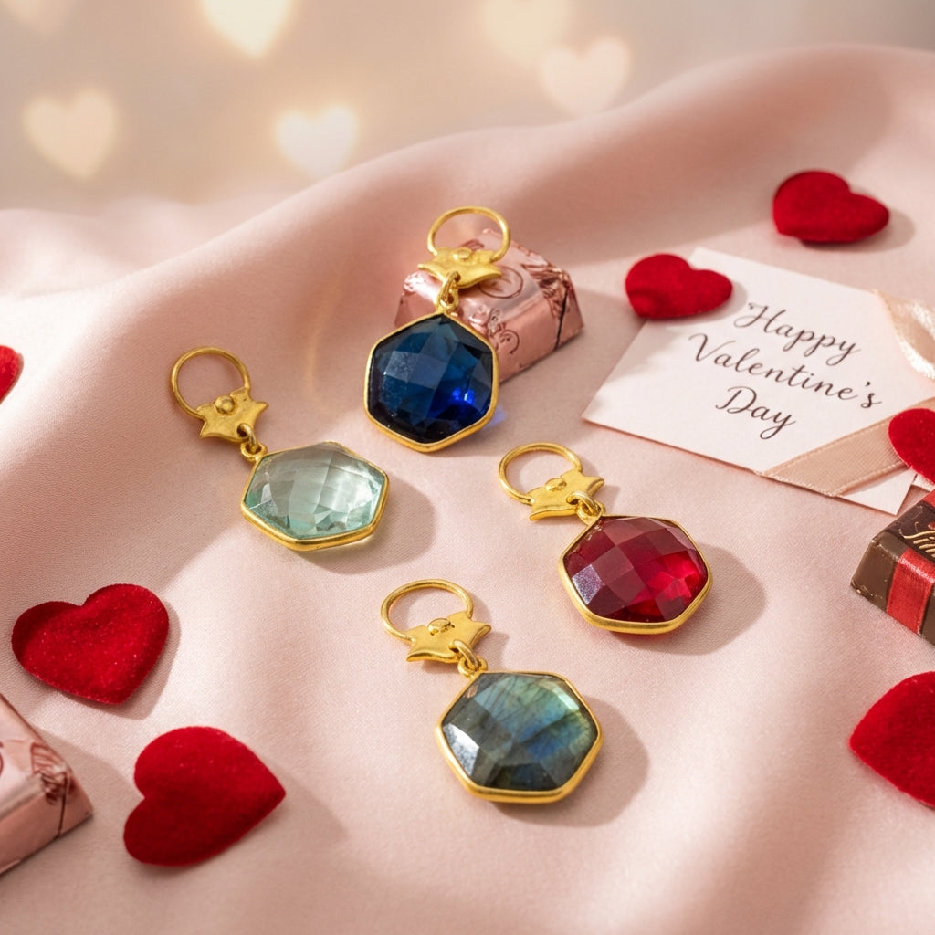 Colorful Faceted Hexagon Stone Pendant with Roman Replica – Vermeil